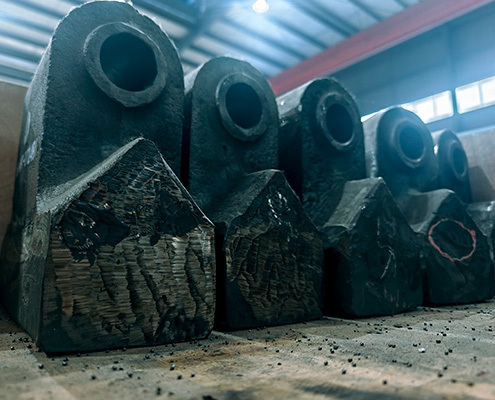 ???????破碎錘(錘頭)是錘式破碎機決定破碎效率和成本的關鍵部件,選擇合適的材質(zhì)和類型可大幅提高生產(chǎn)效率,降低維護成本。長沙上為根據(jù)客戶破碎機型號、物料特性和運行工況合理選擇合適的材質(zhì)與生產(chǎn)工藝,可最大化設備使用壽命,降低用戶的生產(chǎn)成本。